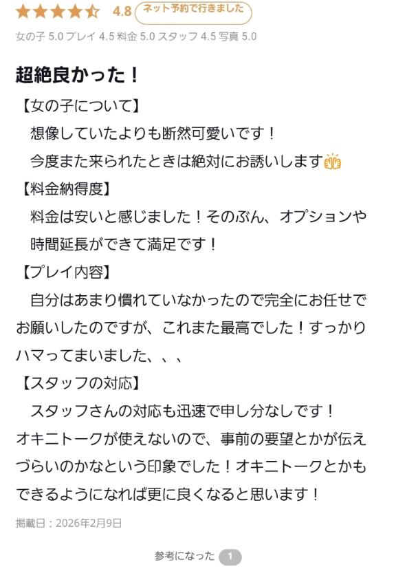 ごりぽーさん、今回も会えて嬉しかったです🫶いつも口コミま…