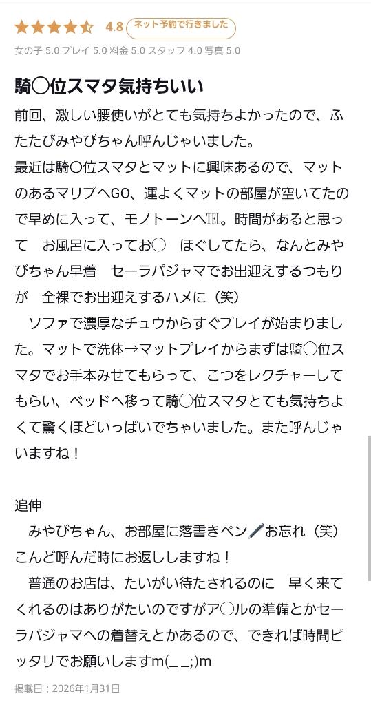 さぁみやびちゃんクチコミ2件追加いただきました!圧倒的感…